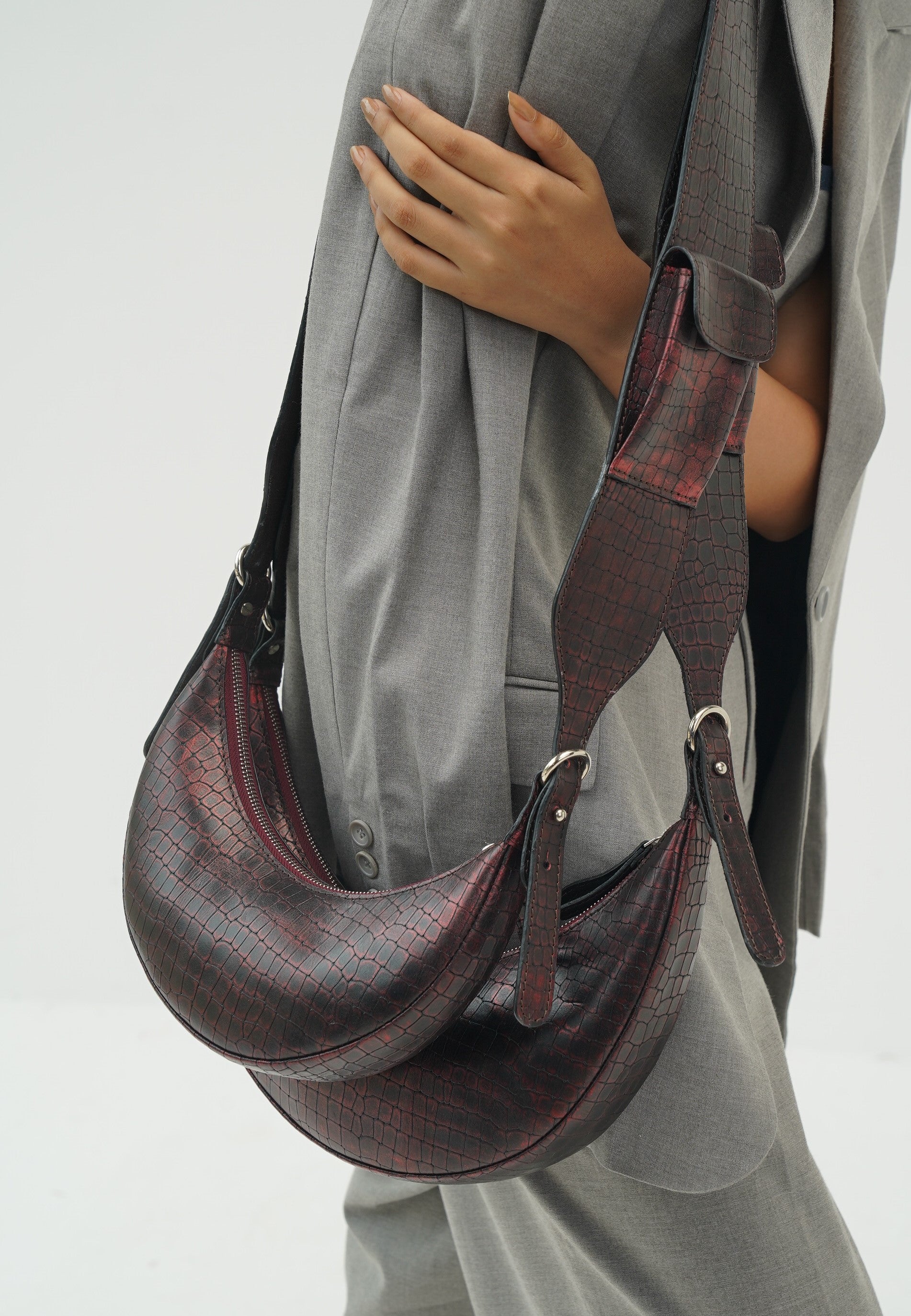 Mistry’s “It” bag Selena embodies the iconic crescent moon shape. Handcrafted with precision and adorned in leathers of various aesthetic patterns and prints, Selena is the go to bag for every event. It is suitable to fit your phone, small accessories & truckloads of glamour.