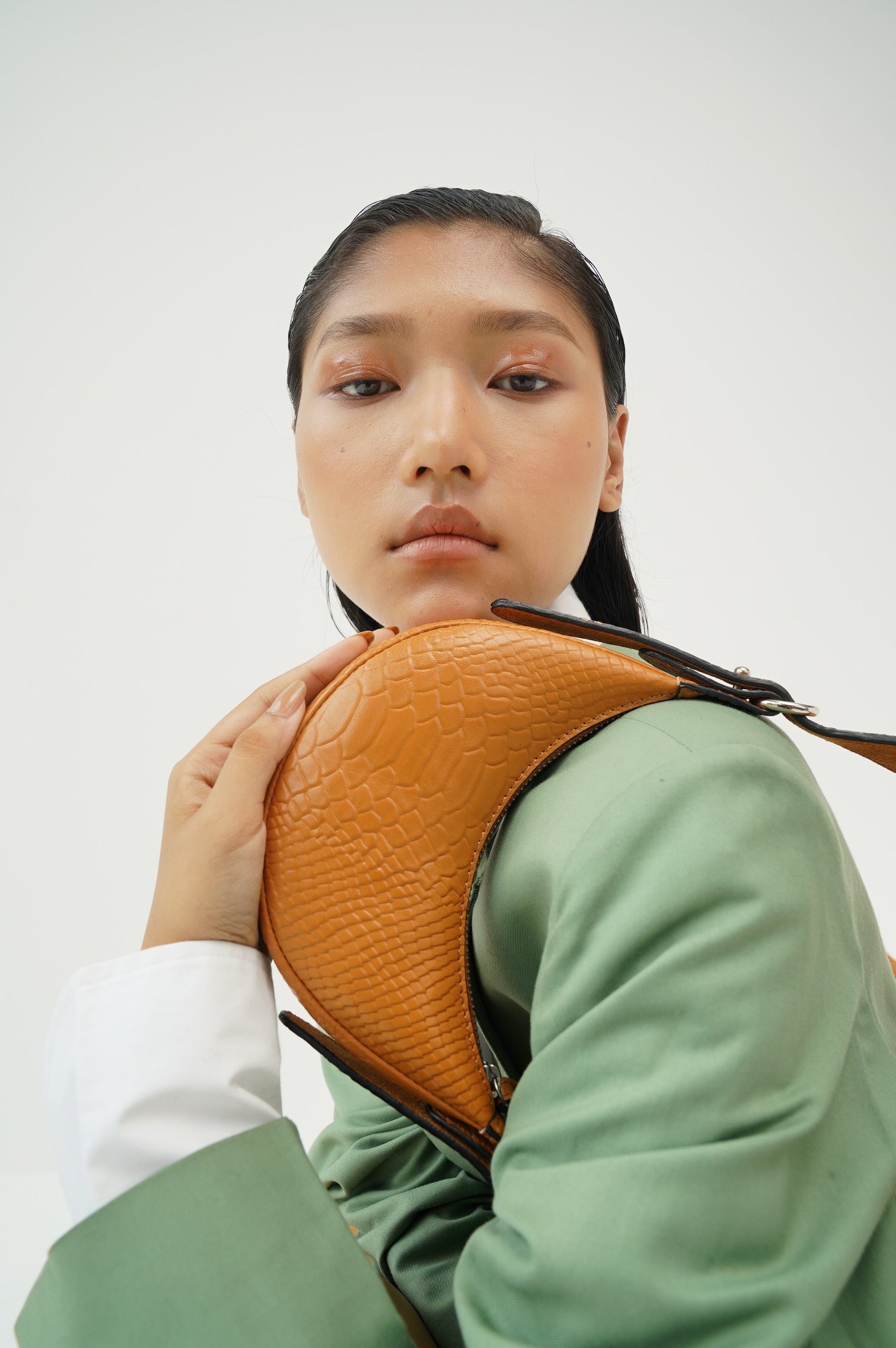 Mistry’s “It” bag Selena embodies the iconic crescent moon shape. Handcrafted with precision and adorned in leathers of various aesthetic patterns and prints, Selena is the go to bag for every event. It is suitable to fit your phone, small accessories & truckloads of glamour.
